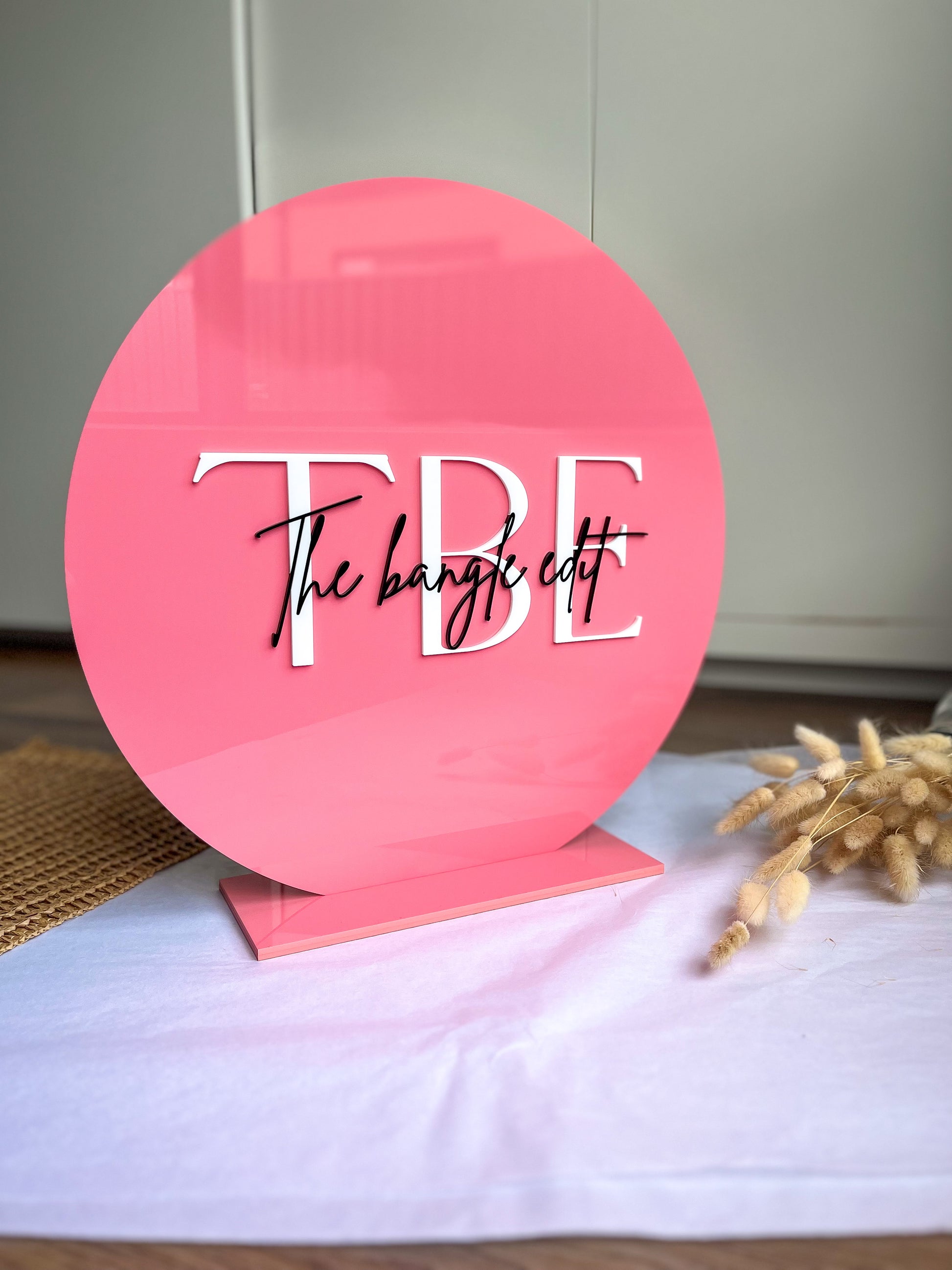 Both base and text are cut in acrylic, and colours carefully selected to match your logo/colour scheme.