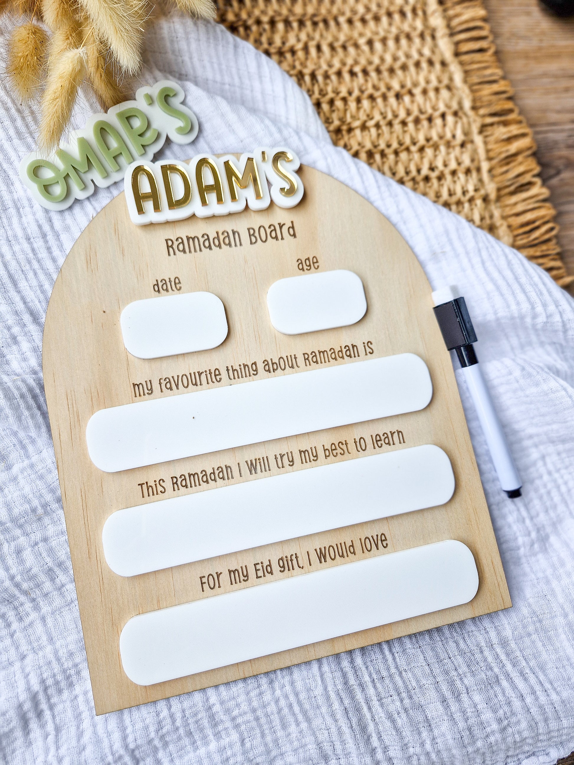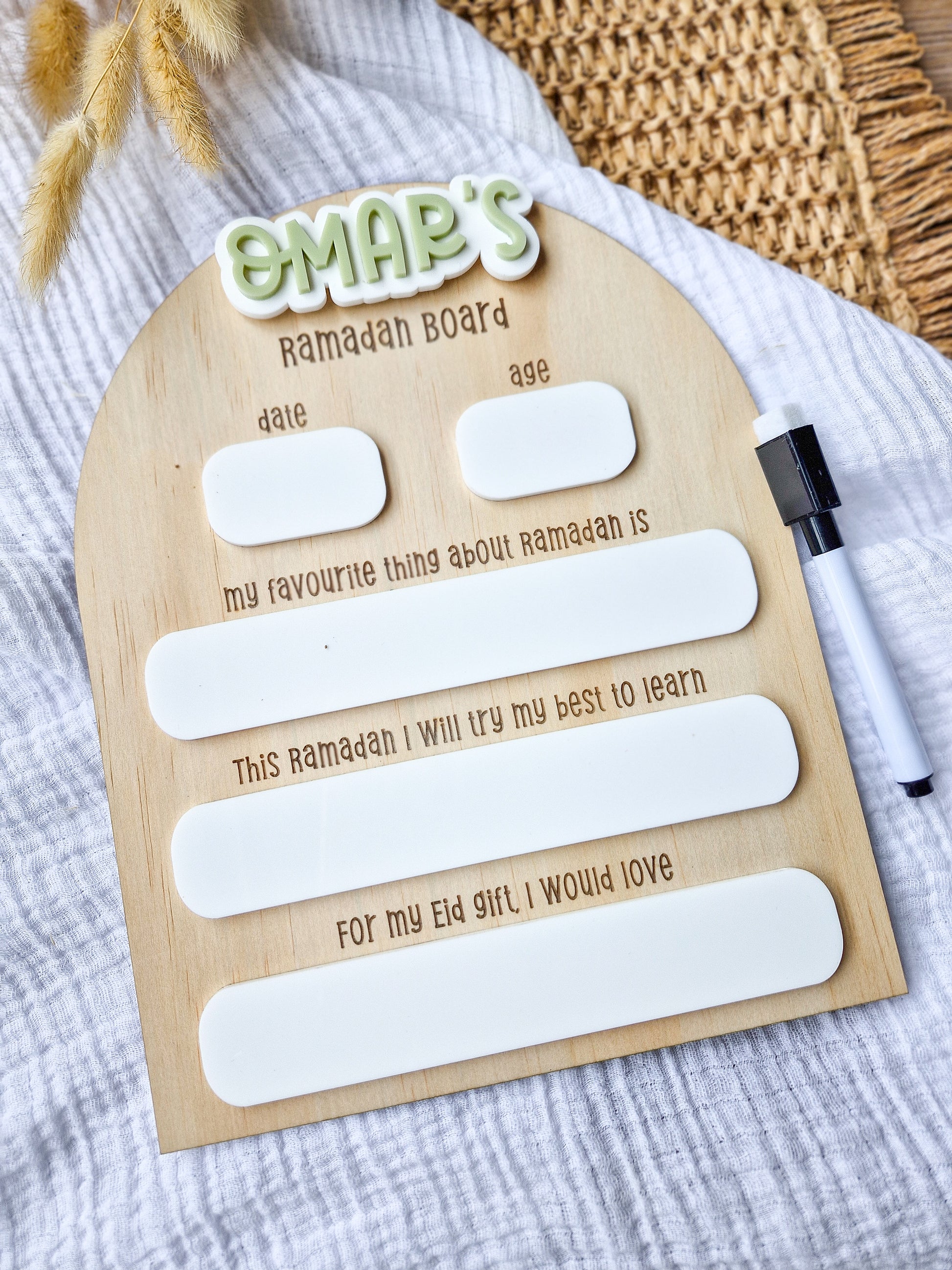 Measuring 200mm x 250mm, the board features a selection of fun yet meaningful questions tailored to help children reflect on Ramadan’s values, traditions, and personal experiences. Its reusable wipe-off surface allows children to update their responses daily or throughout the month, keeping the activity fresh and engaging.