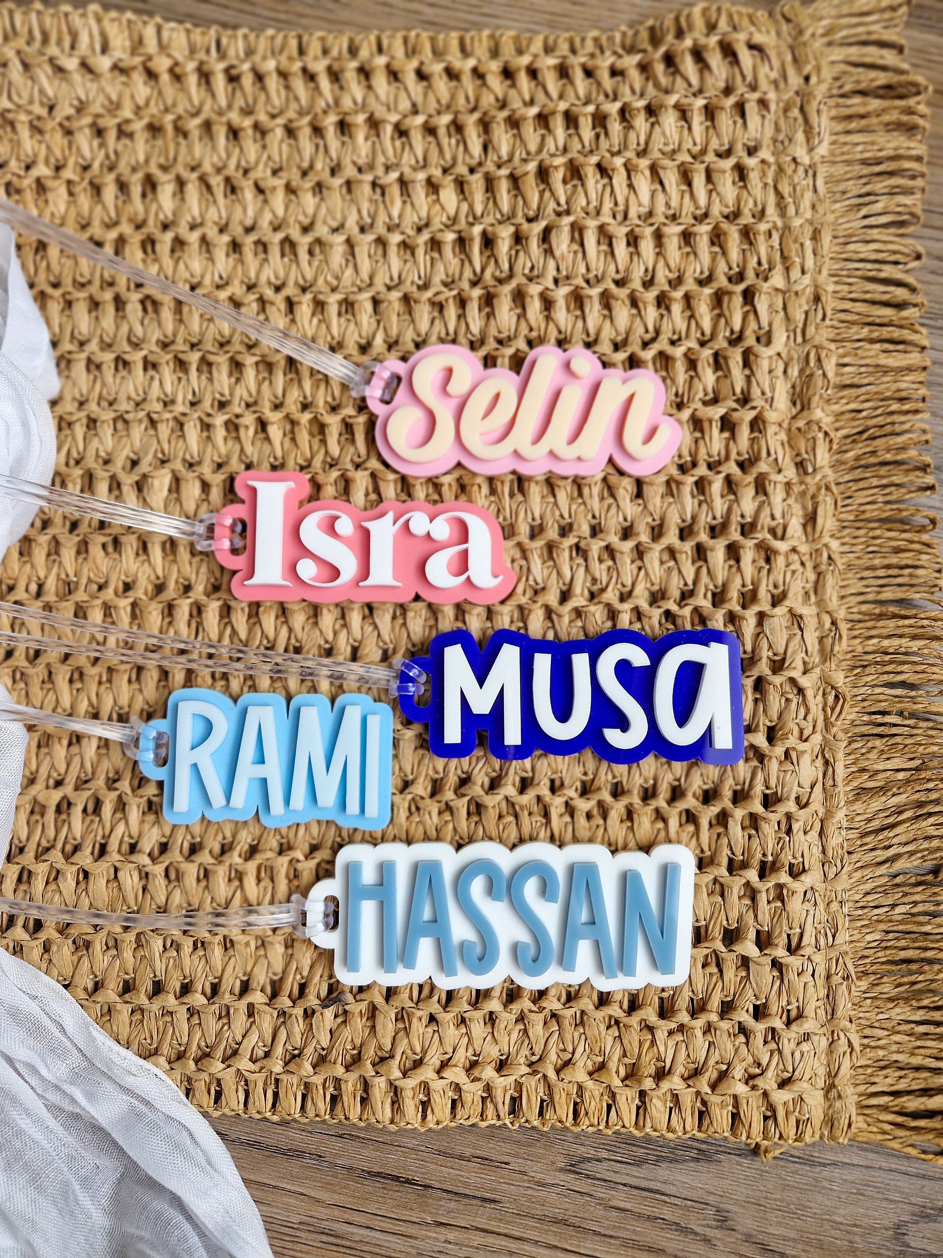 Made using high quality 3mm gloss acrylic, and paired with flexible loop for easy attachment to bag.
