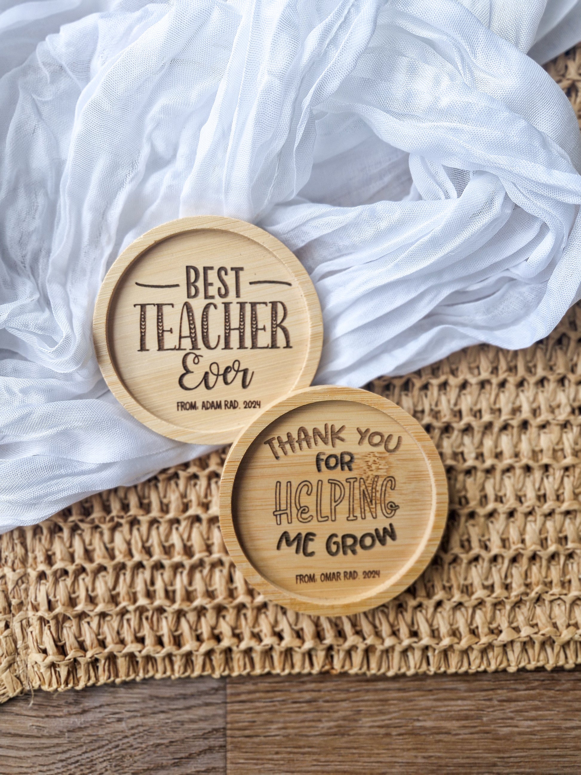 Treat your teacher or your child's teacher/educator to the perfect gift - our personalised teacher coasters. It's practicality meets personalisation, with two designs to choose from, and personalised with your child's name. Show your appreciation in style and functionality with this thoughtful present.
